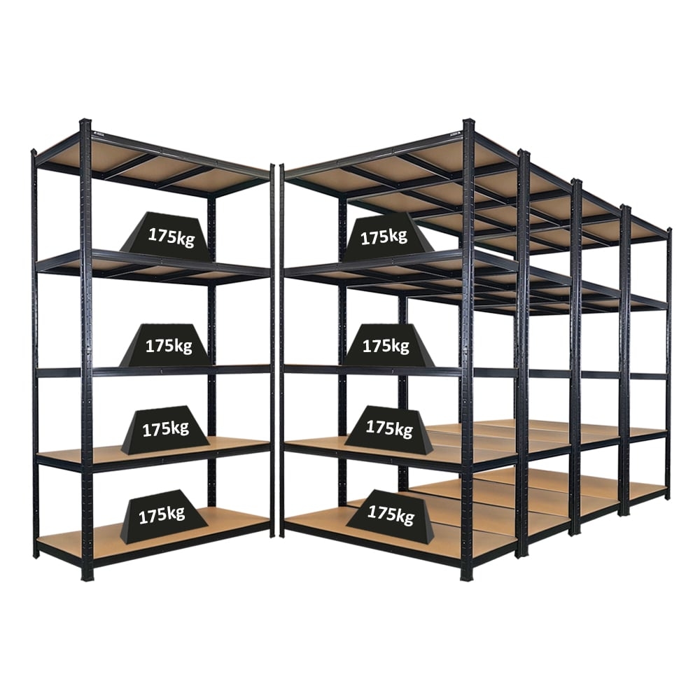 PROREGAL Mega Deal | 5x Schwerlastregal Giant Ragnar | HxBxT 200x120x50cm | 5 MDF-Platten-Ebenen | Fachlast 175kg | Schwarz | Stecksystem Lagerregal