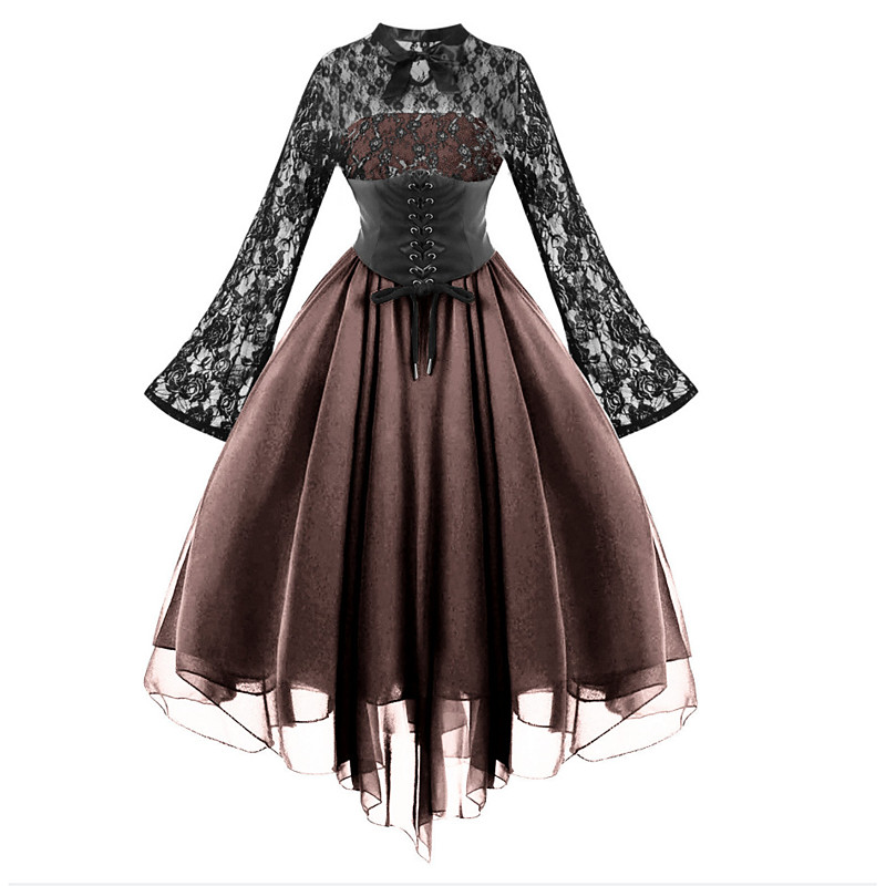 Retro Vintage Punk Gothic Dress Masquerade Witch Lace Fancy Dress Women's Fantasy Steampunk Walpurgis Night Halloween Carnival Masquerade Halloween Event / Party Adults' Dress