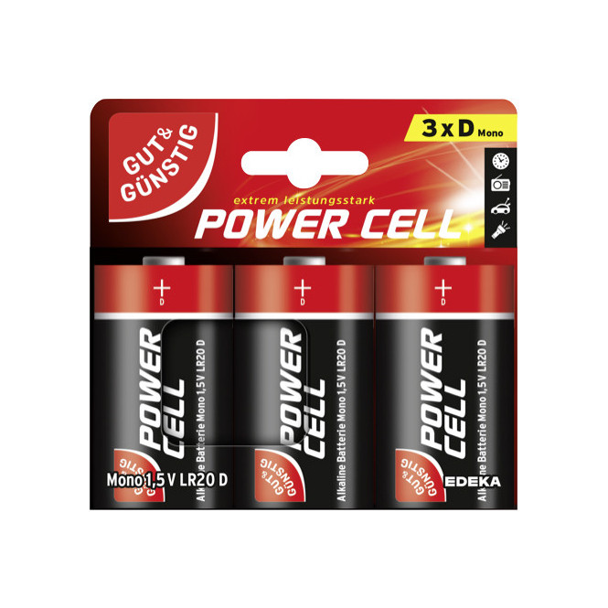 Gut & Günstig Power Cell Alkaline Mono D 1,5V LR20 Batterien 3ST