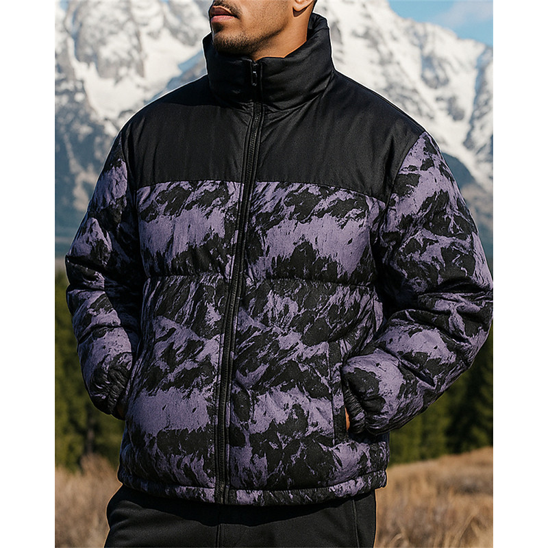 Men's Outdoor Jacket Hiking Jacket Puffer Jacket Outdoor Windproof Warm Hiking Outfits Hiking Clothes Winter Autumn / Fall Jacket Hunting Climbing Camping / Hiking / Caving Printing White Green Grey