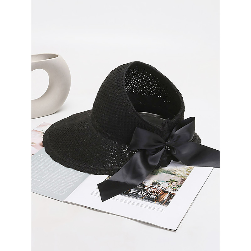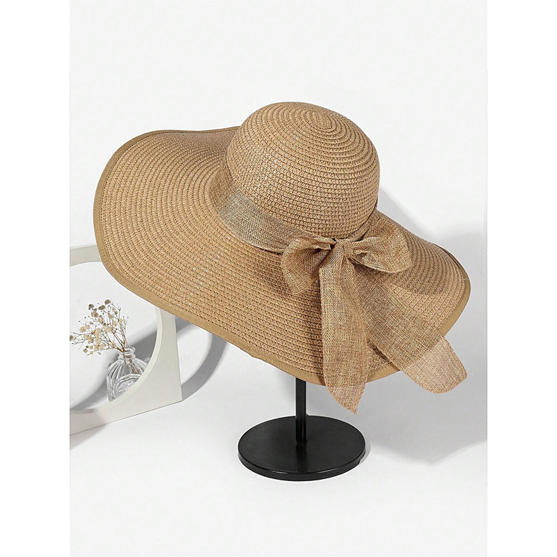 Women's Wide Brim Foldable Straw Sun Hat with Black Bow – Elegant Beach Vacation UV Protection Hat for Summer Travel and Outdoor Wear