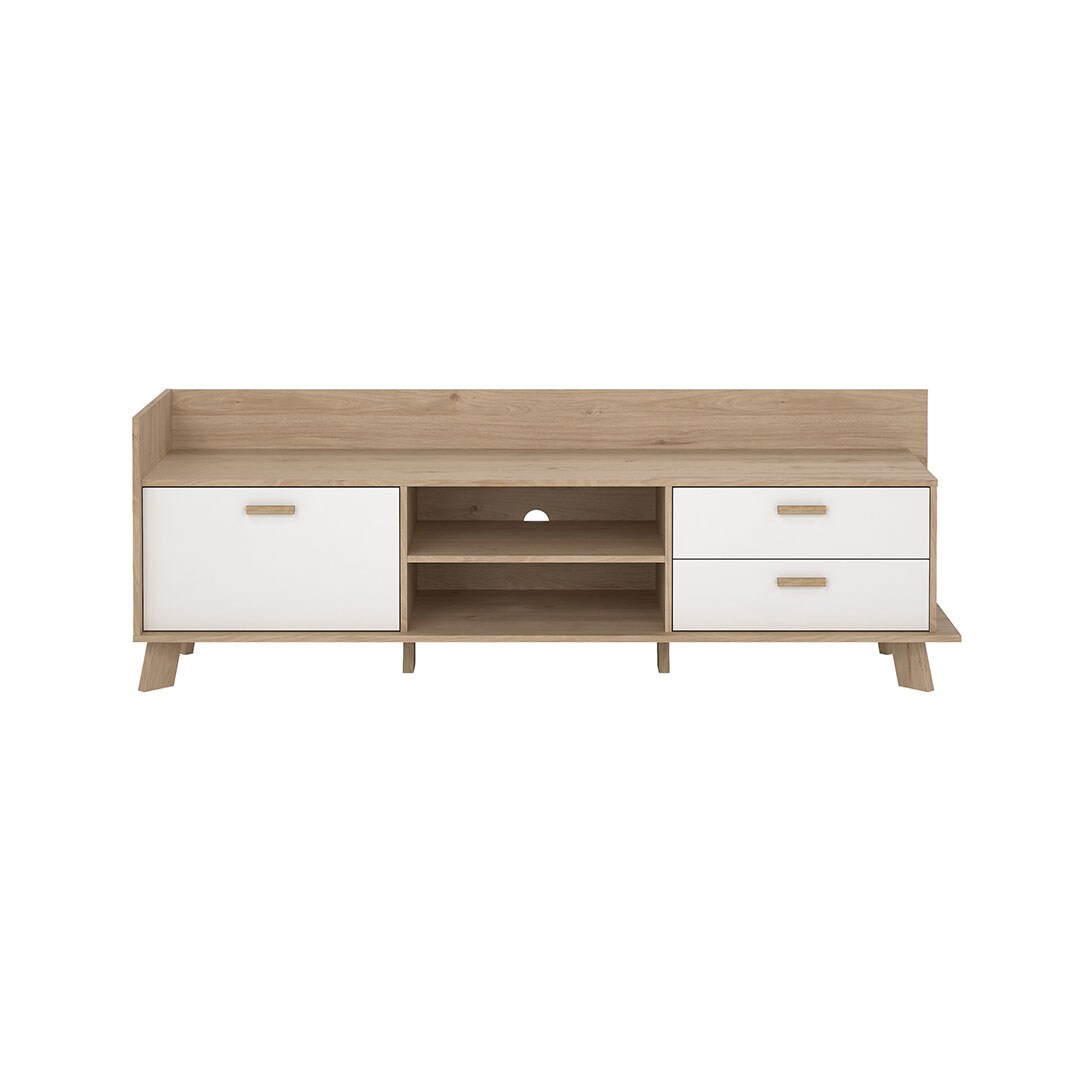 Ebuy24 Ikast TV Tisch 1 Tür, 2 Schubladen, 2 Ablagen Eichen-Dekor, weiß.