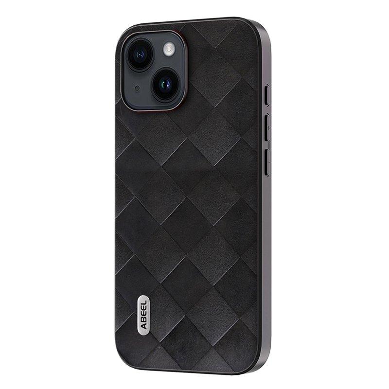 ABEEL iPhone 15 Fodral KonstLäder PC+TPU Stötabsorberande Svart