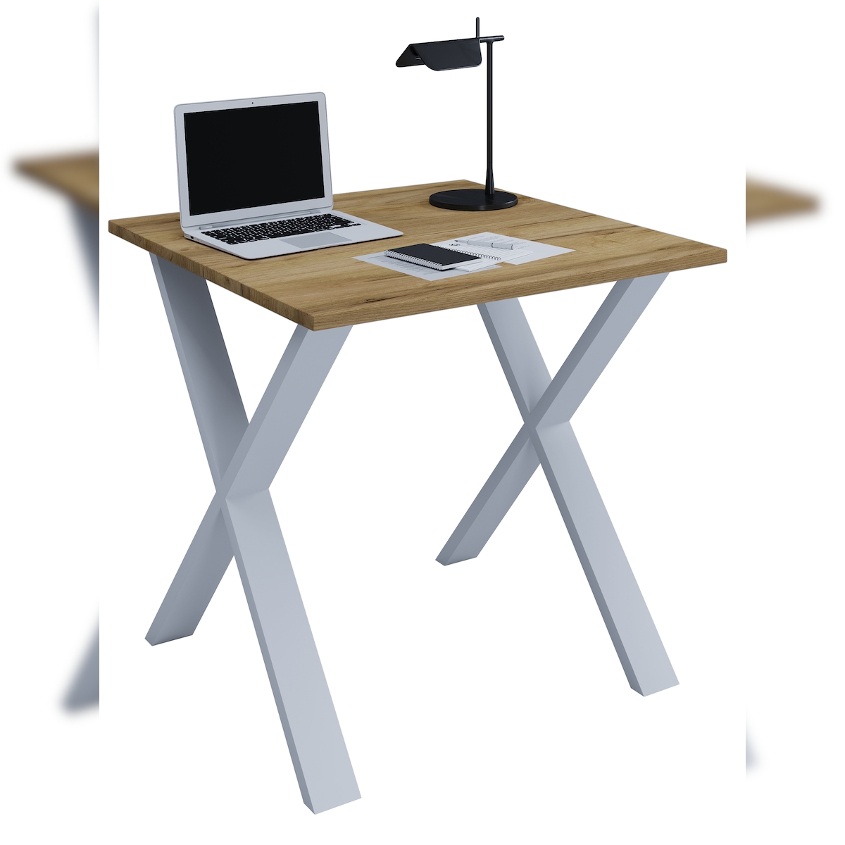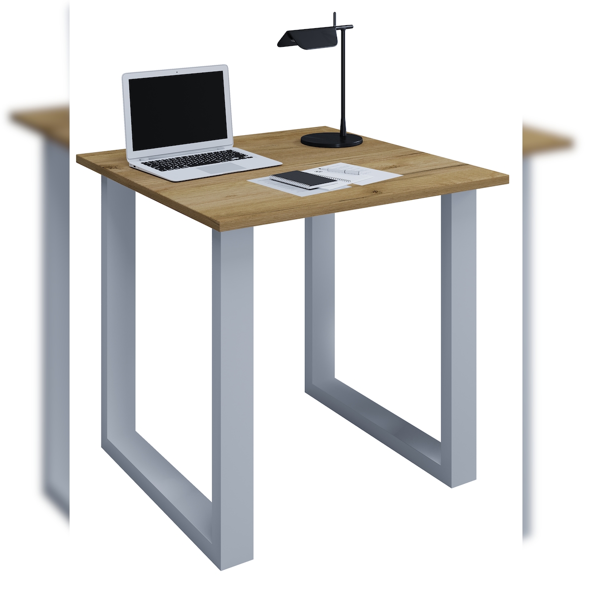 VCM Schreibtisch Lona Silber / Honig-Eiche H. 76 x B. 80 x T. 80 cm
