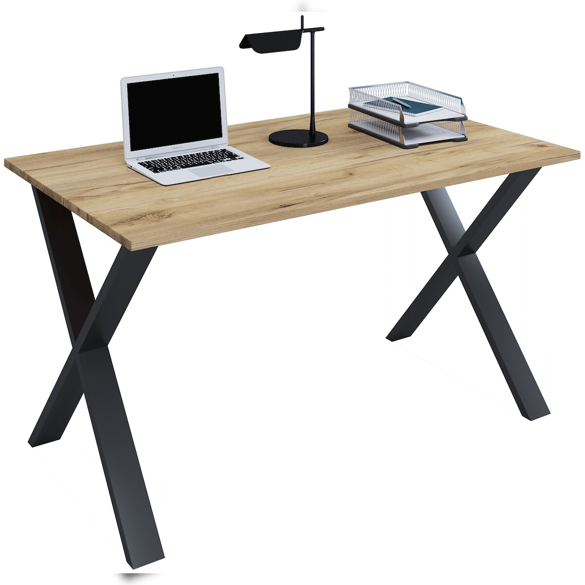VCM Schreibtisch Lona Schwarz / Honig-Eiche H. 76 x B. 140 x T. 80 cm