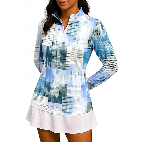 Per donna Geometrico Sfumatura Maglietta Maglietta sportiva Polo da golf Maglia da tennis Manica Lunga Cerniera Floreale UPF50 Resistente ai Raggi UV Alta elasticità Traspirante Tennis Golf