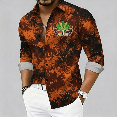 Herren-Mardi-Gras-Hemd – Button-Down-Hemd mit grafischem Maskenmotiv