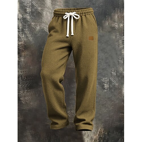 Herren Jogginghose Hose Waffelhose Kordelzug Tasche Elastischer Bund Einfach Komfort Sport im Freien Täglich Mode Lässig Dunkelbraun Schwarz Mikroelastisch