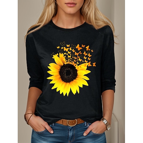 Per donna Maglietta Floreale Grafico Vintage Elegante Casual Manica Lunga Girocollo Top Regolari Quotidiano Stampato Nero Blu Grigio Primavera Autunno Inverno