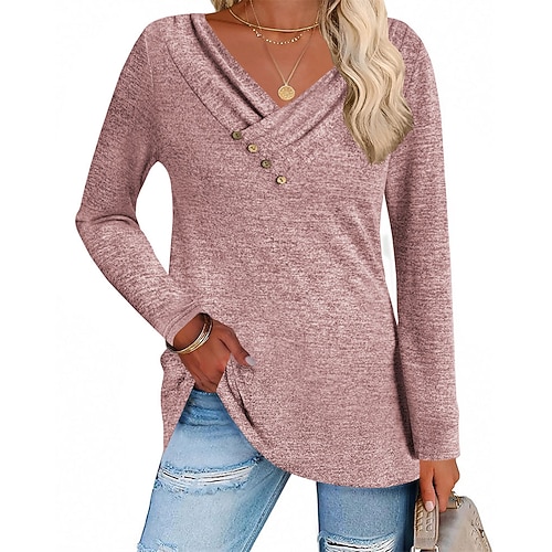 Per donna Blusa Top Eleganti Semplice Elegante Vintage Signore Manica Lunga Scollo a V Top Regolari Lavoro Quotidiano Ferie Arricciato Bottoni Nero Rosso Viola chiaro Grigio chiaro Grigio scuro