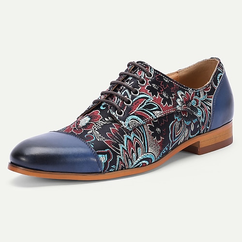 scarpe eleganti da uomo con tacco a blocco e lacci fantasia – design geometrico blu e nero per feste, eventi formali e da ballo