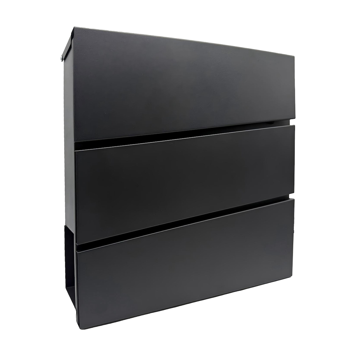 Relaxdays Briefkasten mit Zeitungsfach, HBT: 37,5 x 35,5 x 10,5 cm, DIN C4, wetterfest, 4 Schlüssel, Postkasten, schwarz