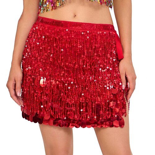 Costume da danza Samba del Carnevale di Rio Gonna di paillettes Gonna di frange scintillanti Scarf hip di danza del ventre glitterato per Carnevale Festival Festa Costume per performance Festival del