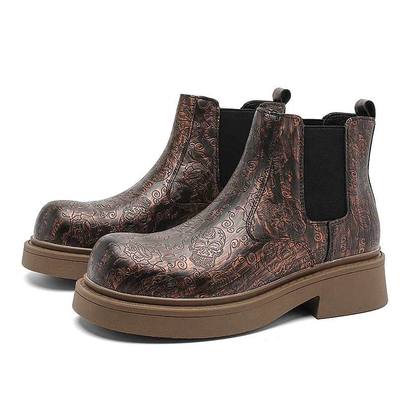 Men's Blue Snake-Patterned Leather Boots with Metallic Toe Cap – Trendy, Stylish Design, Perfect for Evening Events and Fashion Forward Looks