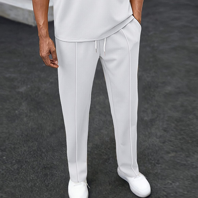 Men's Sweatpants Trousers Waffle Pants Drawstring Pleated Elastic Waist Solid Color Moisture Wicking Breathable Full Length Sports Outdoor Casual Daily Fashion Streetwear Black White