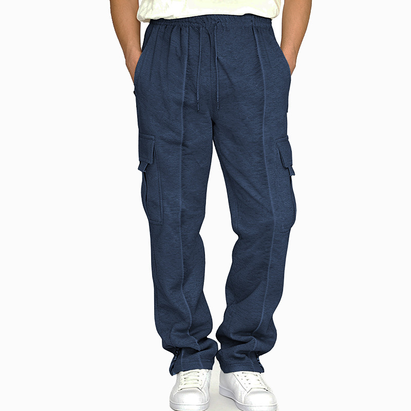 Men's Athletic Pants Trousers Cargo Sweatpants Pleated Pants Drawstring Elastic Waist Multi Pocket Plain Comfort Sports Outdoor Daily Fashion Casual Black Navy Blue Micro-elastic