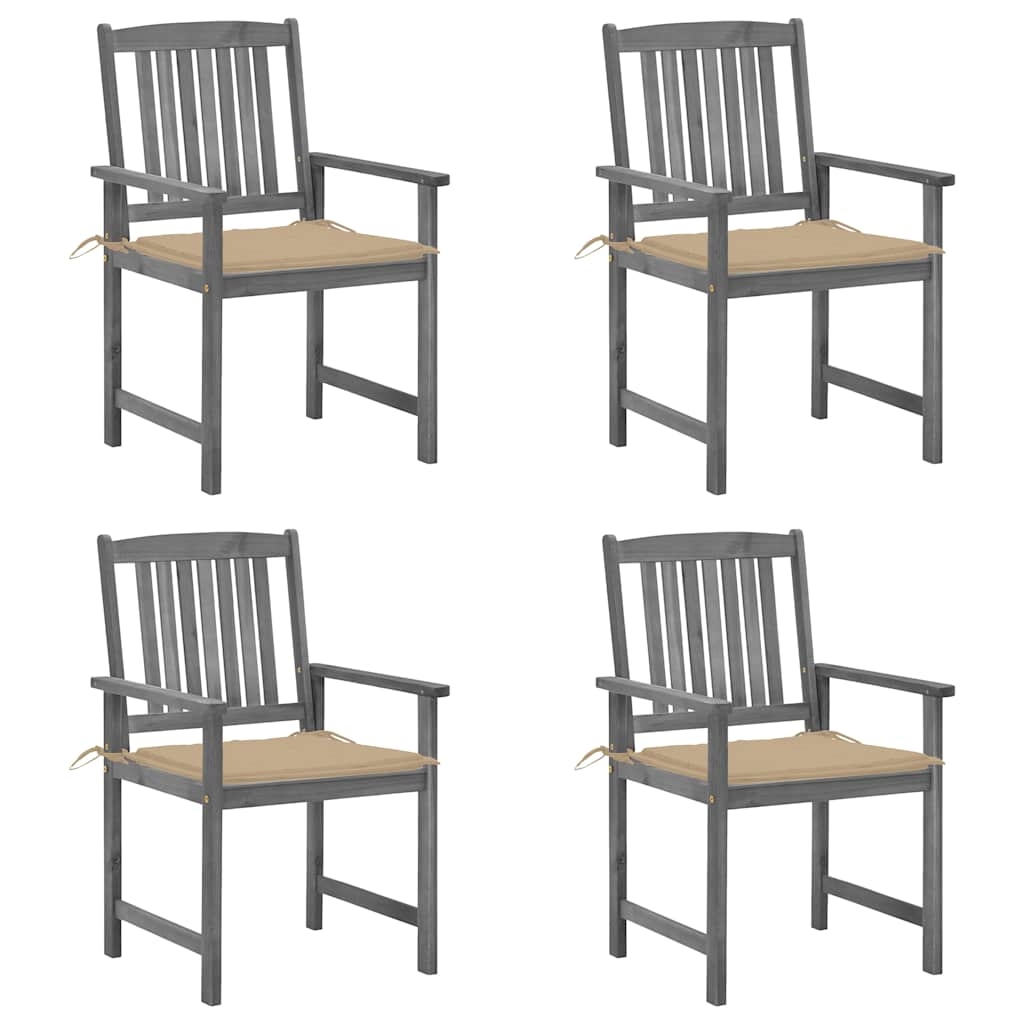 vidaXL 4x Gartenstuhl mit Kissen Holzstuhl Gartensessel Stuhl Stühle Essstuhl Balkonstuhl Terrassenstuhl Gartenmöbel Grau Massivholz Akazie
