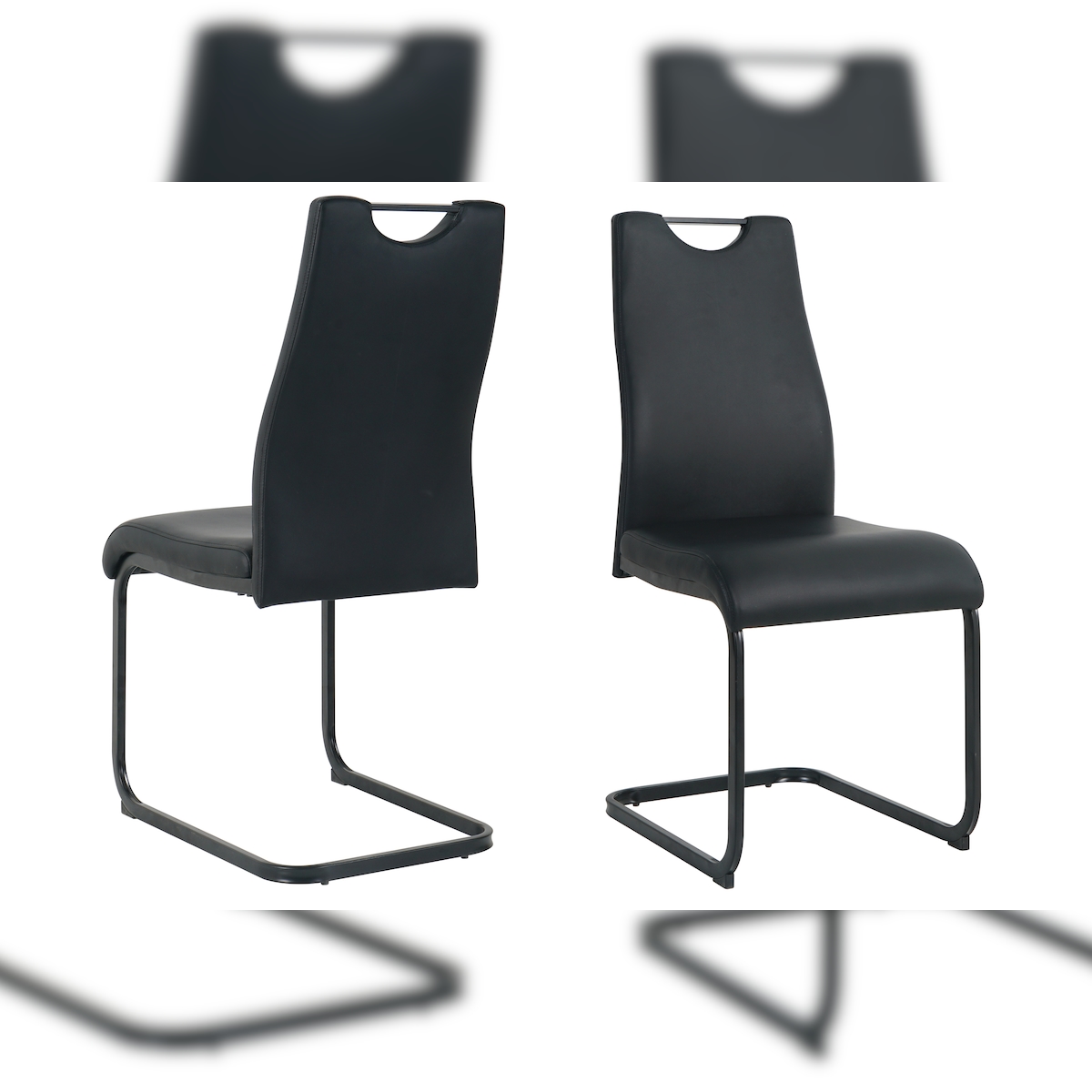 Möbilia Freischwinger-Stuhl 2er Set | Kunstleder | Freischwingergestell | B 42 x T 56 x H 98 cm | schwarz – schwarz | 21020058 | Serie STUHL