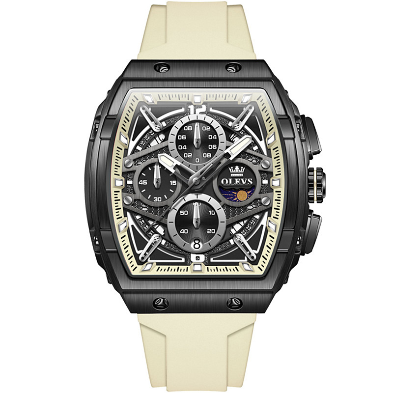 OLEVS Men Quartz Watch Luxury Large Dial Fashion Business Luminous Calendar Chronograph Waterproof Silicone Watch