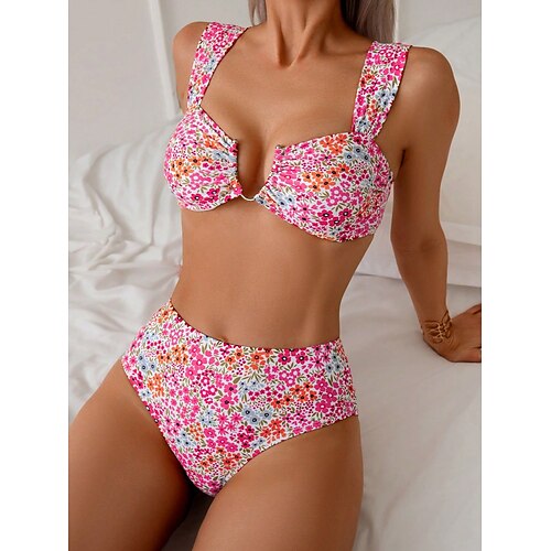 Per donna Costumi da bagno Tankini Due pezzi Birichino Costume da bagno Controllo della Pancia Vita alta Snello Senza schiena Vacanza Abbigliamento da Spiaggia Floreale Scollo a V Senza Maniche
