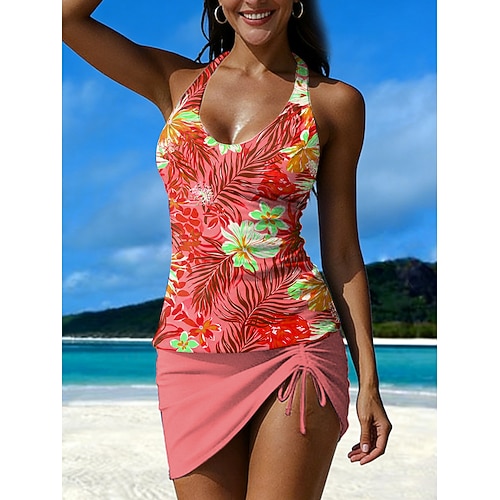 Per donna Costumi da bagno Tankini Gonna Costume da bagno Elegante Vacanza Floreale Grafico All'americana Senza Maniche Costumi da bagno