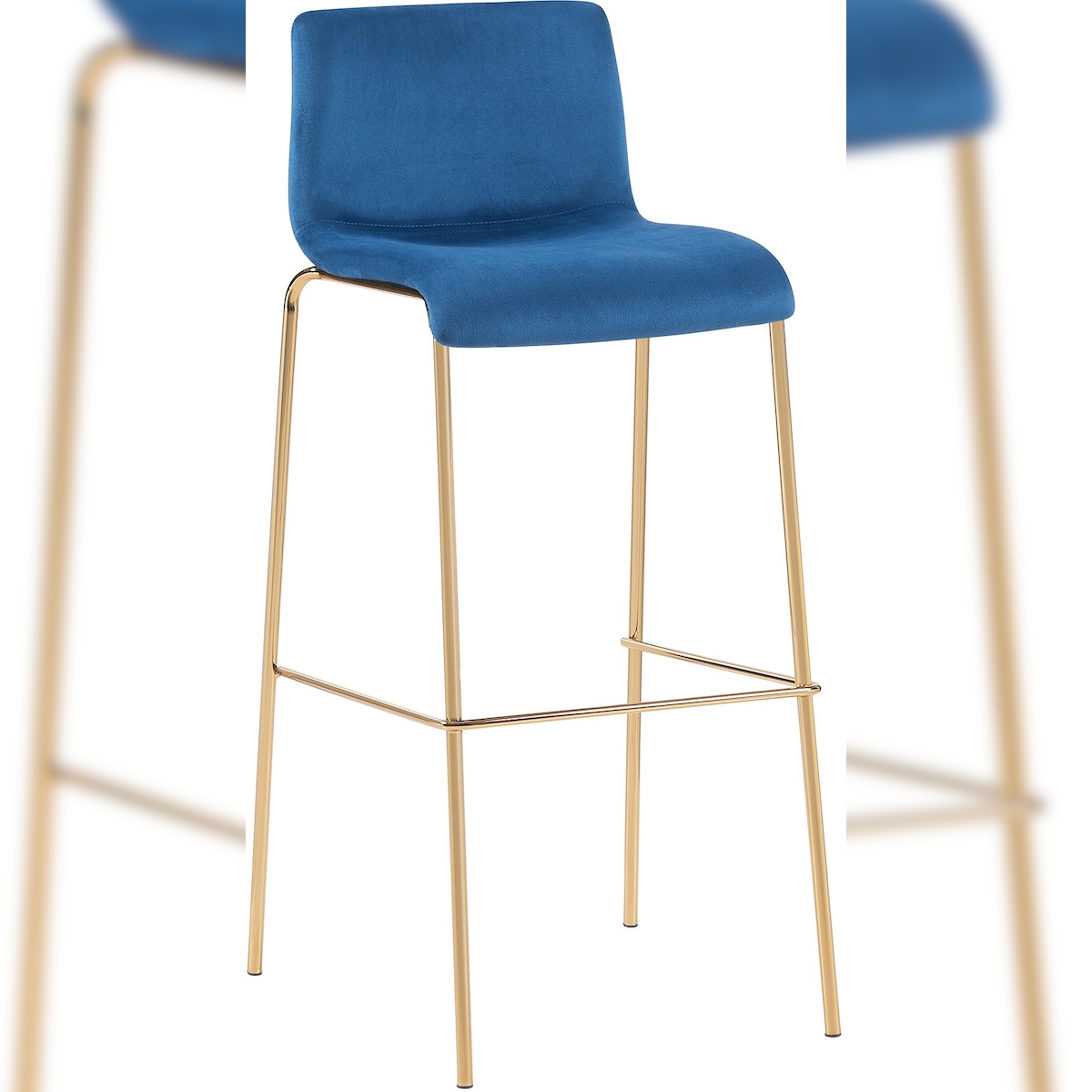 DELUKE Barhocker TENAR - Samt Blau 43x48x100 cm Gold | Barstuhl Mit Lehne Tresenhocker Tresenstuhl Kneipenhocker Kneipenstuhl