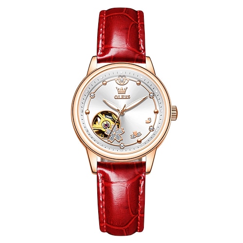 OLEVS Da donna Orologio meccanico Lusso Grande quadrante Strass Affari Scheletro cavo Luminoso Sub e immersioni Impermeabile Pelle Cinturino in acciaio inossidabile Guarda