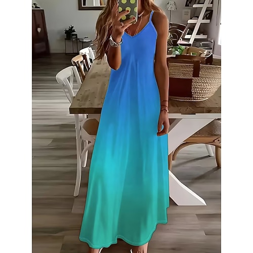 Per donna Abito maxi Vestito Estivo Abito a trapezio Abito Sottoveste Vacanza Casual Boho Spiaggia Vestibilità comoda Ombre Grafico Senza Maniche Scollo a V Blu Arancione Ametista Estate Primavera