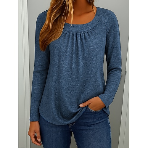 Per donna Maglietta Blusa Casual Manica Lunga Girocollo Top Regolari Quotidiano Giallo Vino Blu Verde Primavera Autunno
