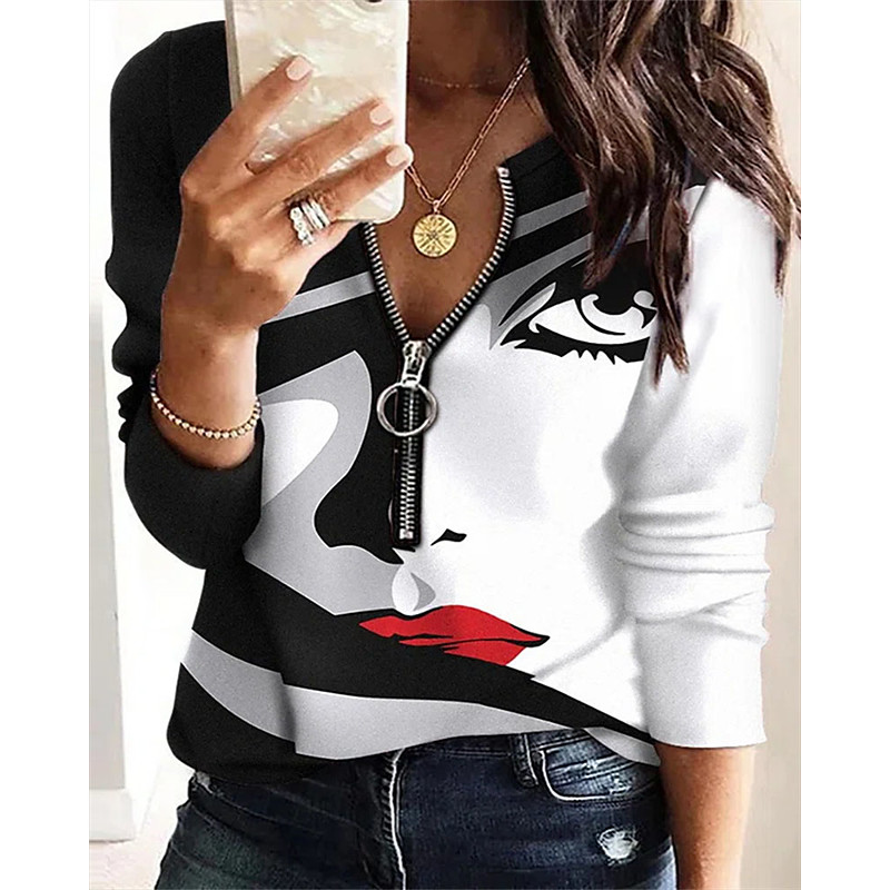 Women's Pullover Sweatshirt Zip Up Sweatshirts Graphic Color Block Plain Elegant Warm Active Long Sleeve Half Zip Regular Tops Home Work Street Patchwork Print Quarter Zip Blue Light Pink Black White
