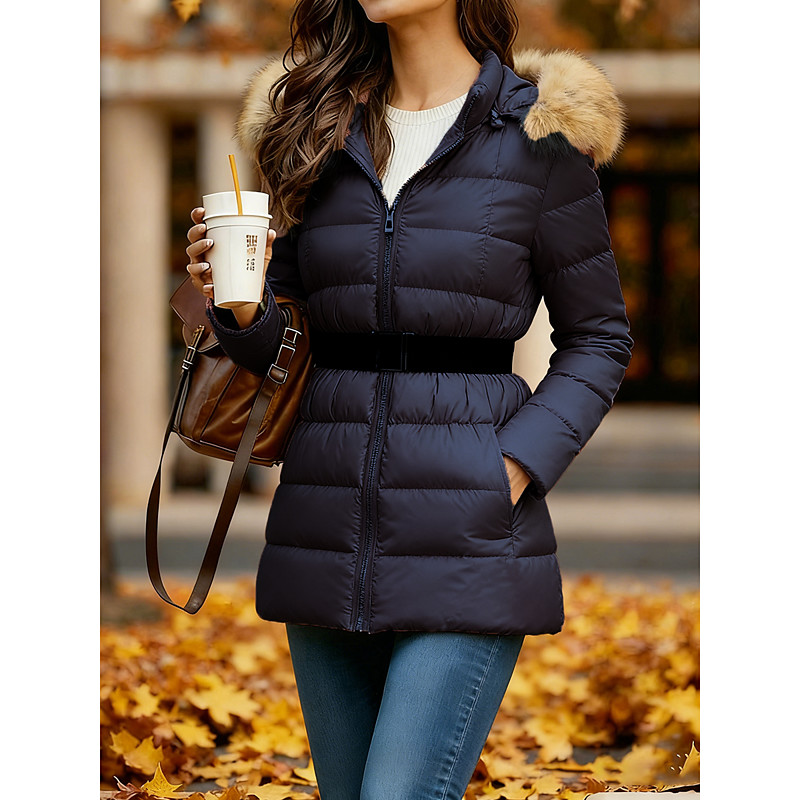 Women's Quilted Jacket Padded Jacket Casual Jacket Warm Comfortable Zipper Pocket Faux Fur Trim Fashion Casual Plain Street Casual Daily Wear Going out Zipper Regular Hooded Regular Fit Long Sleeve