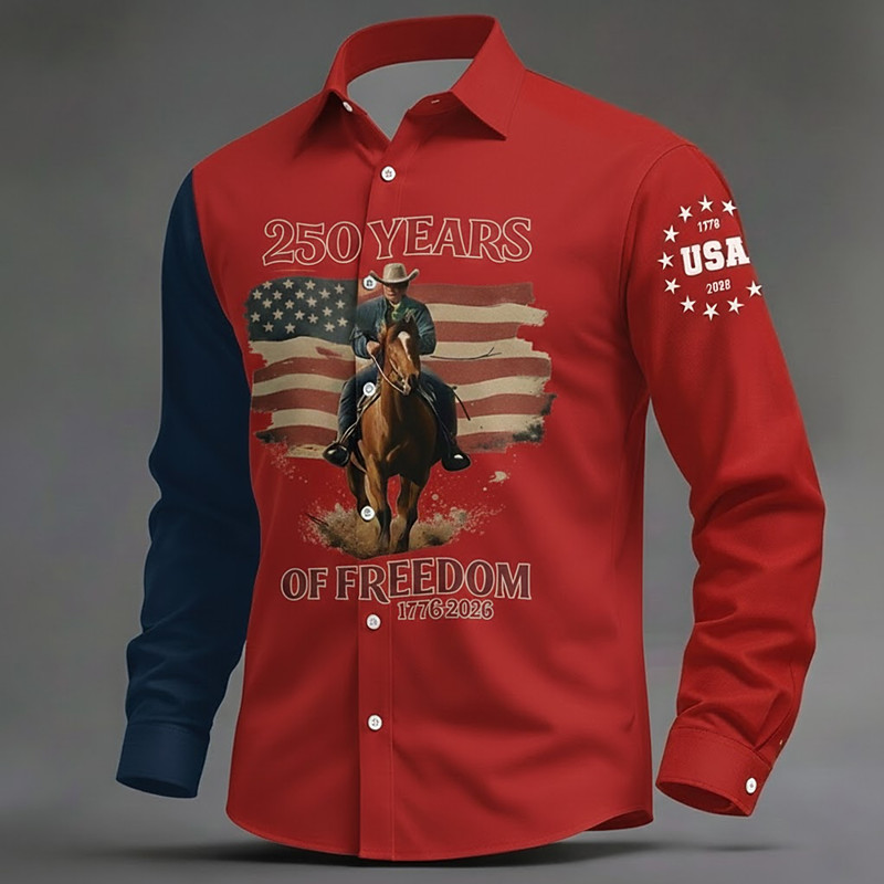 Men's US Flag Freedom America's 250th Anniversary Shirt Button Up Shirt Long Sleeve Vintage Retro Holiday Casual Daily Spring Fall Turndown 3D Print Linen Like Shirt White Red Dark Blue
