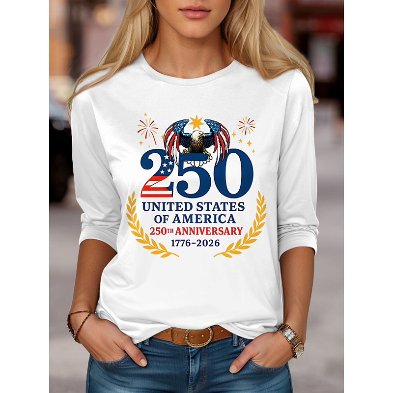 American 250th Women's Independence Day T Shirt Graphic Flag Flag Fashion Stylish Classic Long Sleeve Crew Neck Round Neck Regular Tops Daily Weekend Print Blue Black White Red Summer Spring Fall