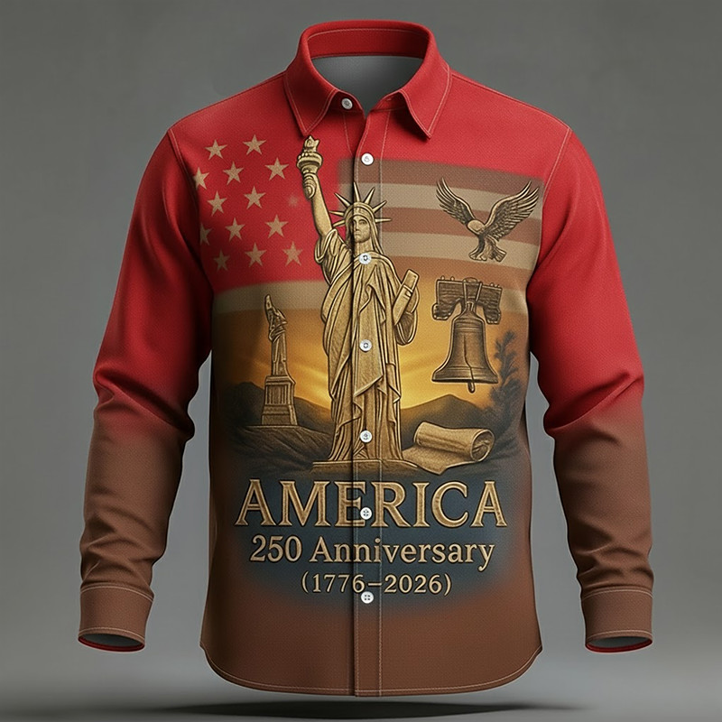 Men's Statue Of Liberty US Flag America's 250th Anniversary Shirt Button Up Shirt Long Sleeve Vintage Retro Holiday Spring Fall Turndown 3D Print Linen Like Shirt Blue White Red