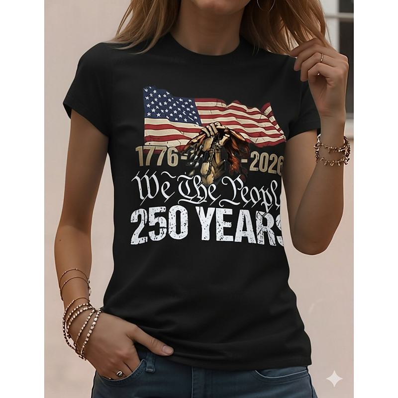 American 250th Women's T Shirt Graphic Independence Day Letter Vintage Stylish Classic Short Sleeve Crew Neck Round Neck Regular Tops Daily Weekend Print Blue Summer Spring Fall