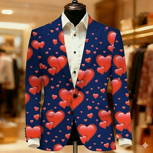 San Valentino Per uomo Cuore Giacca blazer Cappotto Confortevole Traspirante Artistico Casual Quotidiano Abbigliamento da sera Festival Stampa 3D Bottoni Multi-tasche Tutte le stagioni Dentellato
