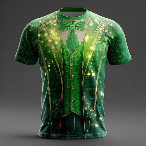 Maglietta da uomo per il giorno di San Patrizio, costume da folletto, smoking verde, papillon, maglietta con grafica 3D, divertente vestito per festa irlandese, abbigliamento, abbigliamento S M L XL