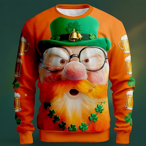 Giorno di San Patrizio Per uomo Trifoglio Irlanda folletto Felpa Moda Esagerato 3D Girocollo Casa All'aperto Club Feste Arancione Girocollo Stampa 3D Inverno Primavera Autunno progettista S M L XL