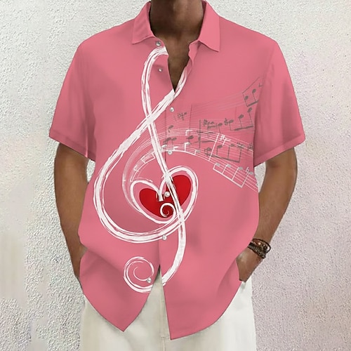 San Valentino Per uomo Note Musicali A cuore Camicia Camicia Estiva Camicia con Bottoni Manica Corta Moda Casual Regalo Ferie Estate Primavera Collo ripiegato Stampa 3D camicie con colletto Una tasca