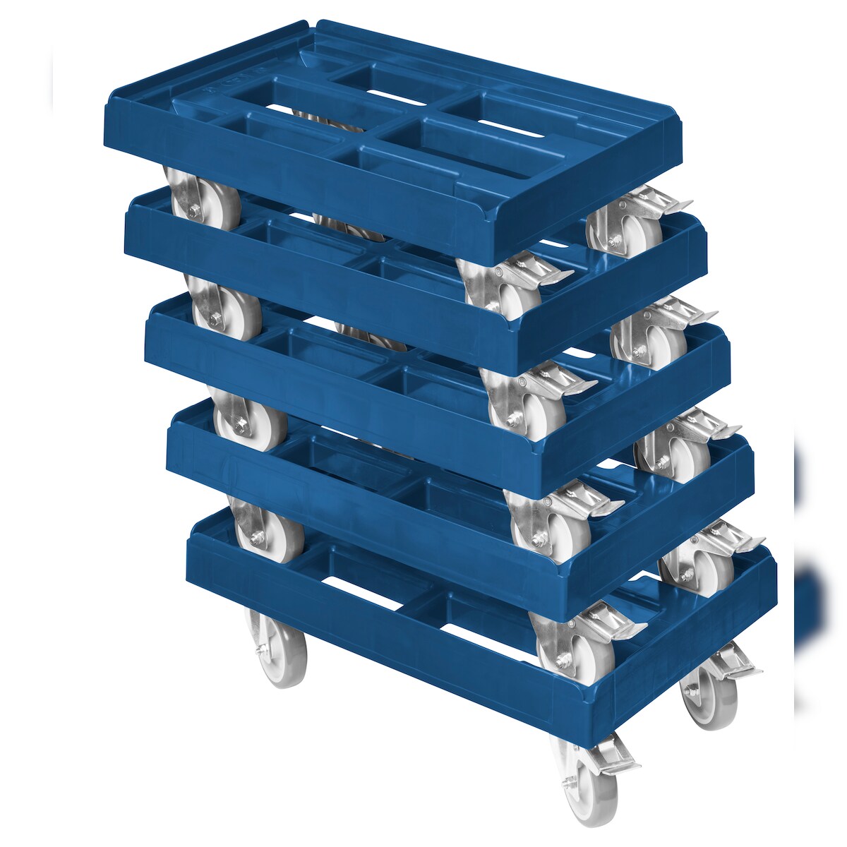 5 Stück Transportroller für Kisten 60 x 40 cm mit 2 Bremsen in blau