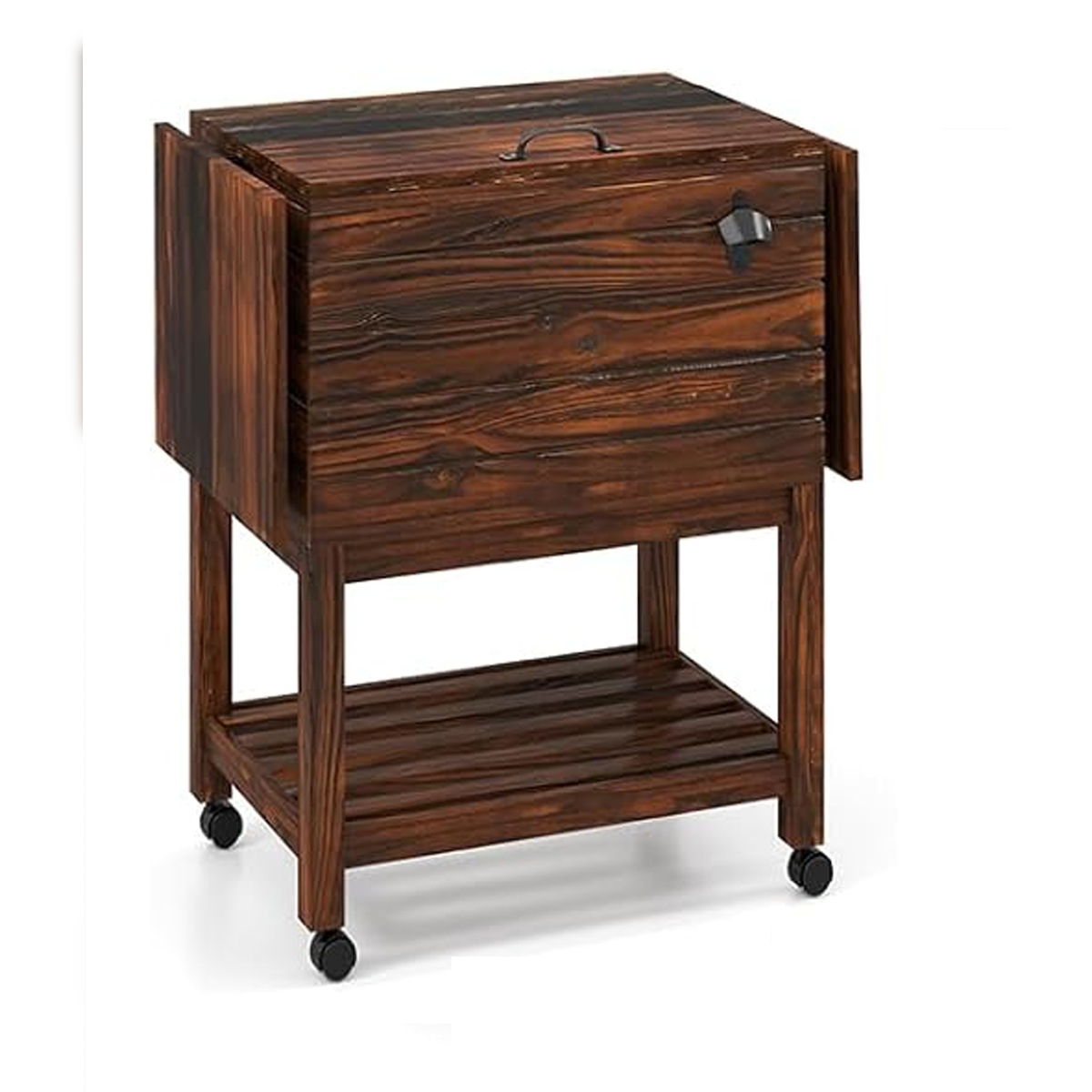 COSTWAY SOARS 51 Liter Rollende Kühlbox, Mobiler Outdoor-Bar 128 x 42.5 x 74 cm, Haltedauer 2-4H, 2 Klappbare Seitenregale, 4 Universalräder