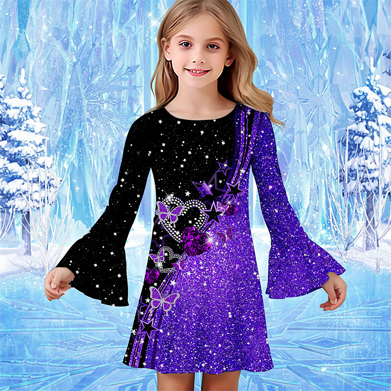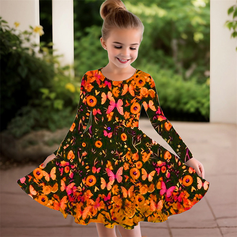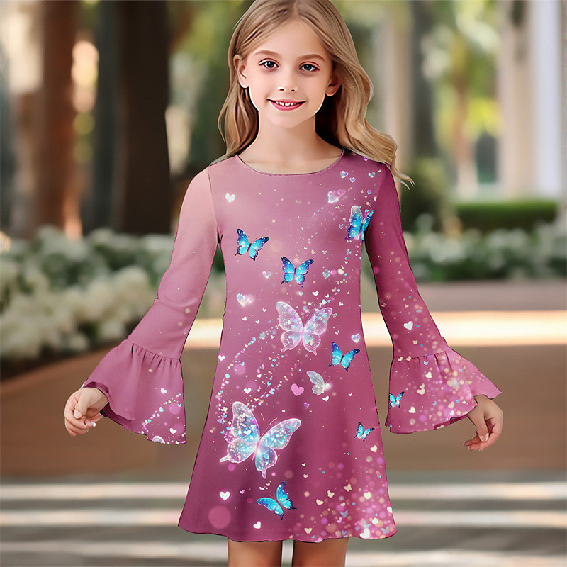 Girls' 3D Cartoon Butterfly Dress Long Sleeve 3D Print Fall Winter Vacation Sports Outdoor Daily Cute Casual Beautiful Kids 3-12 Years Casual Dress A Line Dress Above Knee Regular Fit