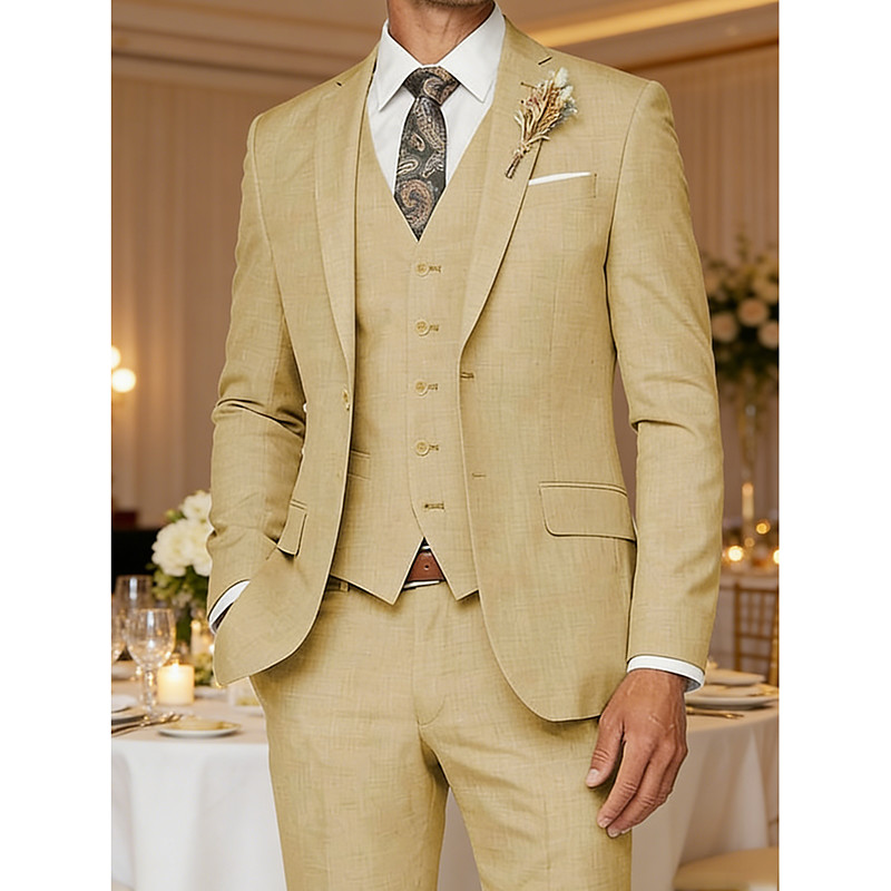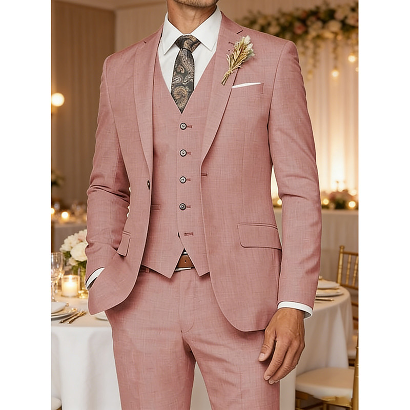 Men's BlazerVestDress Pants Blazer Business Work Wedding Fashion Streetwear Fall Winter Terylene Solid Color 3-Piece Single Breasted Blazer Black Champagne Pink Burgundy