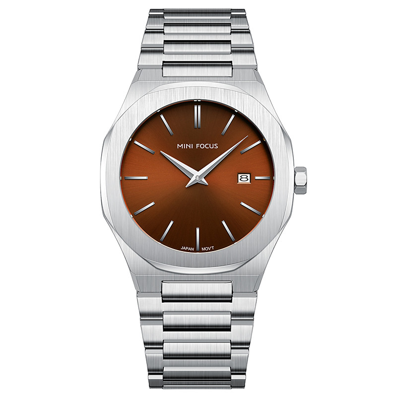 MINI FOCUS Men Quartz Watch Minimalist Large Dial Fashion Casual Calendar Waterproof World Time Decoration Steel Watch