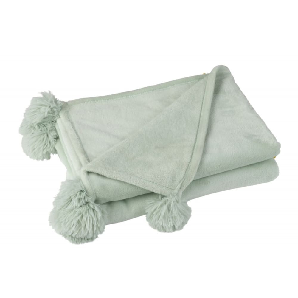 Coperta con pompon in poliestere verde chiaro 173x126 cm