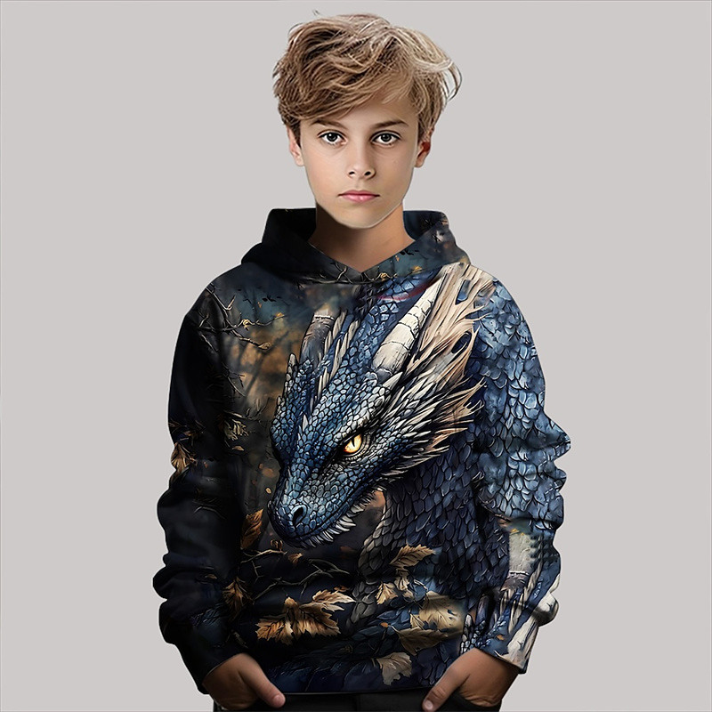 Boys 3D Animal Dragon Hoodie Pullover Long Sleeve 3D Print Fall Winter Fashion Streetwear Cool Kids 3-12 Years Outdoor Casual Daily Regular Fit