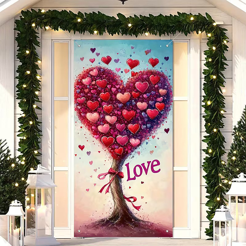 Valentine's Day Posters Door Cover Outdoor Banners Love Heart Cute Romantic 3D Party Dorm Shooting Backgrounds Front Door Marriage Proposal Decoration Home Decor