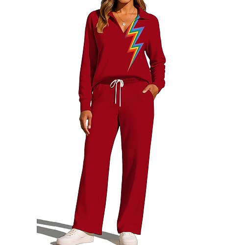 Per donna Maglia Tuta da Ginnastica Pantaloni da Tuta Coulisse Tasca Arcobaleno Giacca e Pantaloni da Tuta Set di Abbigliamento Sportivo Loungewear Estate Grigio scuro Rosso Allenamento in Palestra