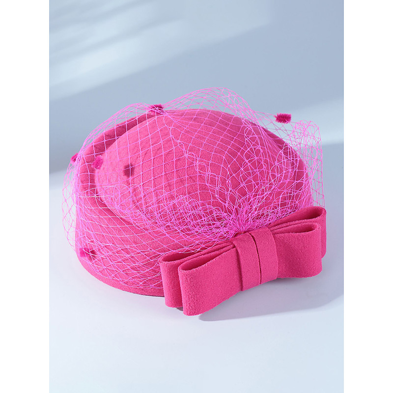Women's Christmas Party Hat - Faux Wool, Bow and Net Design, Multiple Colors for Holiday Celebrations, Perfect for Festive Events and Winter Fashion