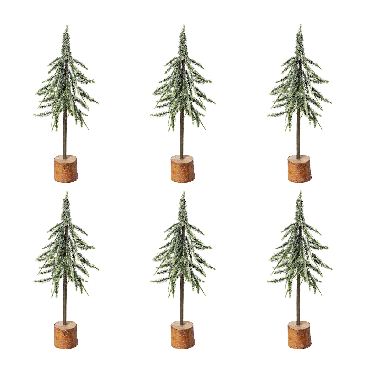 CREATIV green künstliche Pflanze Fichtenstämmchen auf Holzsockel, 50 cm, schnee, 6er Set